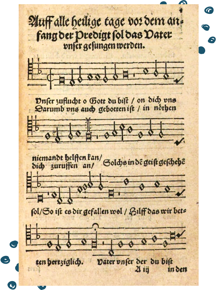Von Anfang an spielte in der lutherischen Reformation beides eine Rolle: Gesangbücher sollten Gottes Wort durch neue Lieder unters Volk bringen, die textlich und musikalisch die Sprache der Zeit sprechen. Ein Beispiel ist Nun freut euch liebe Christen gmein (EG 341), das als balladenhaftes Erzähllied die Musik vom Marktplatz in die Kirche holt. Und die Gesangbücher sollten zugleich tradierte Gesänge weitergeben. Lateinische Gesänge wurden dafür verdeutscht, wie der altkirchliche Hymnus Nun komm der Heiden Heiland (EG 4). Die volkssprachlichen „Leisen“ (kurze, meist einstrophige Lieder, die auf Kyrieleis enden) wurden dafür meist „gebessert“, d.h. um auslegende, predigende Strophen ergänzt, wie Gelobet seist du, Jesu Christ, EG 23). Alle drei Beispiele stammen von Luther aus dem Jahr 1524.