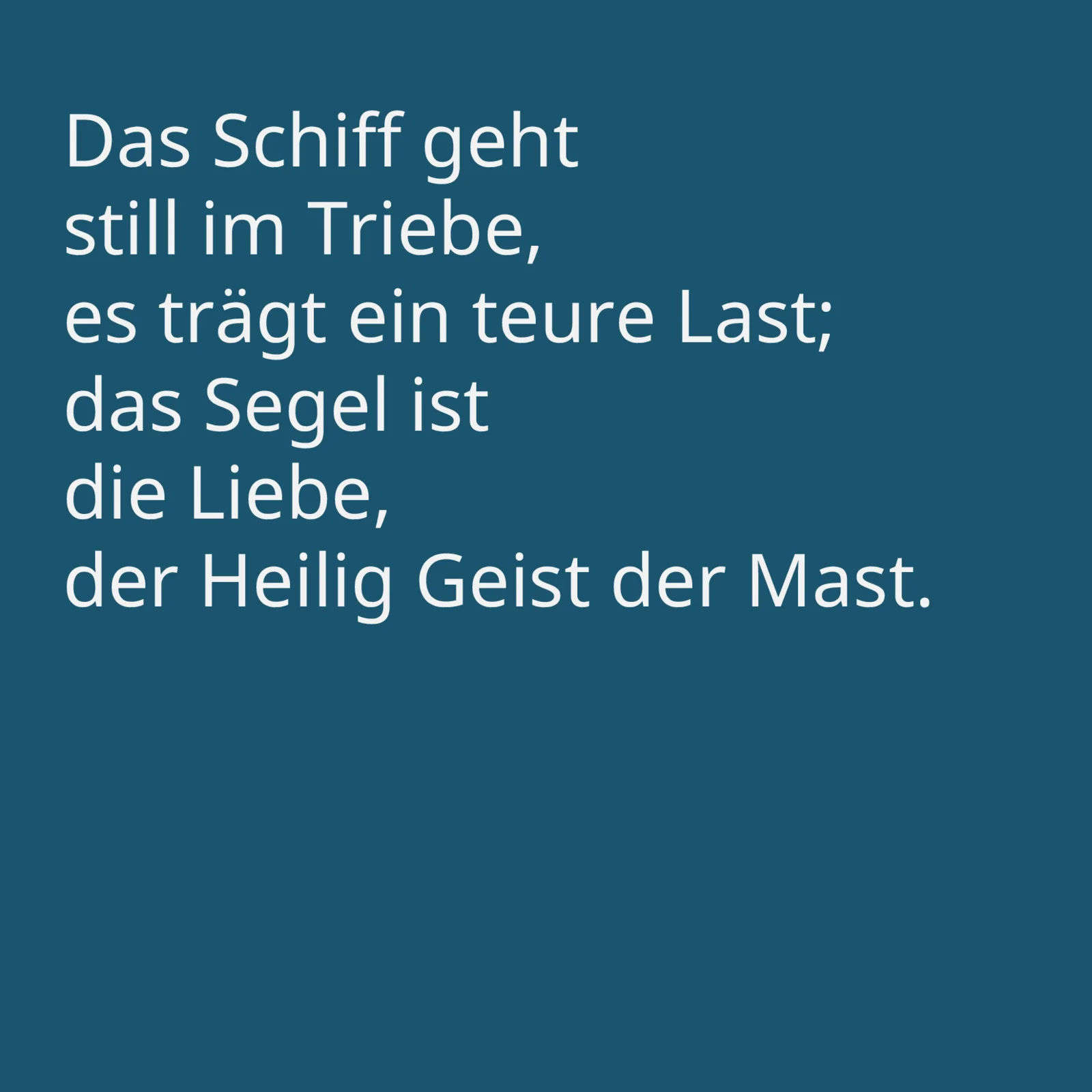 Sprachduktus und Gedankenwelt der Liedvorlage, die zu den ältesten geistlichen Gesängen deutscher Sprache gezählt werden darf, verweisen auf den Kreis der Straßburger Gottesfreunde und den Schwesternkonvent der Dominikanerinnen. Besonders die Strophen 1–3 stehen den Predigten des Mystikers Johannes Tauler nahe. In ihnen beschreiben jeweils zwei Zeilen die Bewegung des Schiffes, während die folgenden zwei Zeilen eine theologische Deutung bieten. Die Verben stehen im Präsens (einmal auch im Perfekt): Jetzt, heute und in mir begegnen sich Himmel und Erde, Gott und Mensch. (Auch für diese Vereinigung steht in der Mystik das Bild des Schiffes.) Sudermann nimmt lediglich geringfügige Änderungen in Wortwahl und Orthographie der vorhandenen vierzeiligen Strophen vor (jeweils 7.6.7.6 Silben). Das vordergründig als Allegorie auf Maria gedichtete Lied wird jedoch durch Sudermanns neue Strophen in seinem mystischen Anliegen erweitert: „Unio mystica“ bedeutet nun, den Weg des Kindes bis zum Kreuz mitzugehen.