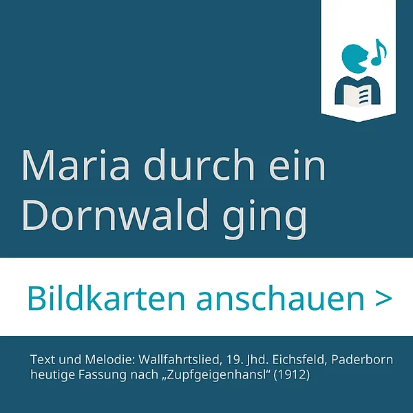 Wie in einem Bilderbuch führen die Bildkarten Schritt für Schritt durch das Lied. Beim gemeinsamen Singen können Eltern und Kinder so Strophe für Strophe entdecken und das Lied gleichsam „singend durchblättern“. Die Zeichnung ist bewusst schlicht und kindgerecht gehalten. Ihre offene Gestaltung lädt dazu ein, eigene Assoziationen einzubringen, die Motive weiterzudenken und die Bilder vielleicht sogar selbst kreativ zu ergänzen oder eigene Bilder zu gestalten.