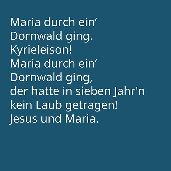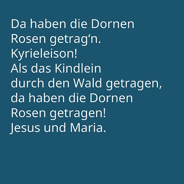 Uralt wirkt dieses Lied und die Geschichte, die es erzählt: die schwangere Maria geht durch einen verdorrten Wald, in dem auf einmal Rosen blühen. Doch tatsächlich ist das Lied nur auf alt gemacht und erst im 19. Jahrhundert entstanden.