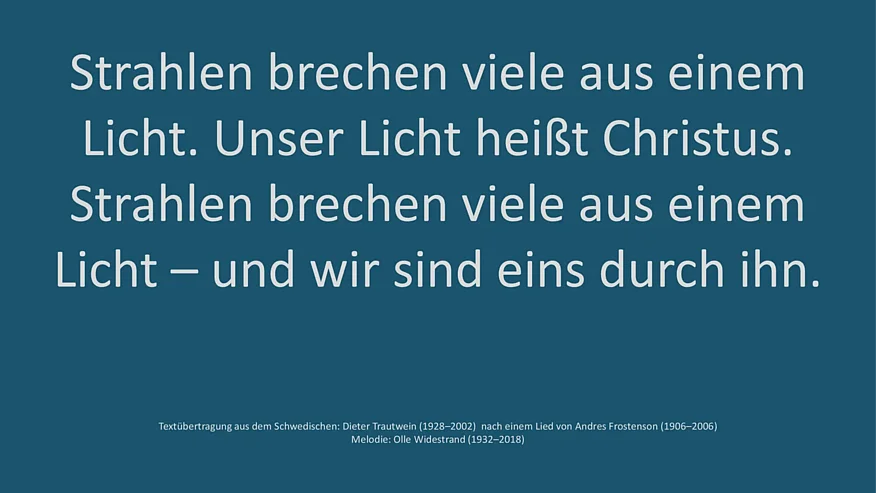 deutsche Übertragung nach der schwedischen Liedvorlage »Lågorna är många, ljuset är ett« von Andres Frostenson von 1974