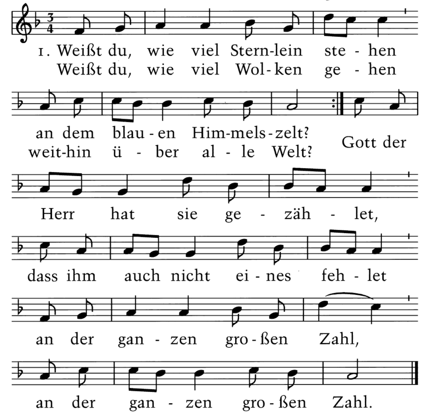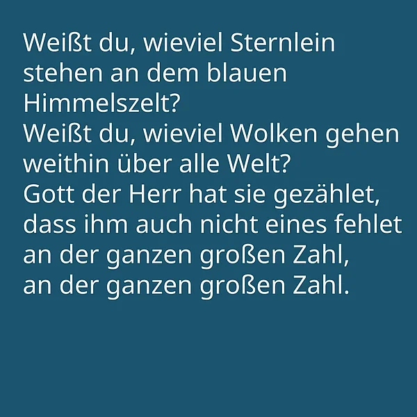 Weißt du, wie viel Sternlein stehen | Evangelisches Gesangbuch Nr. 511, Strophe 1