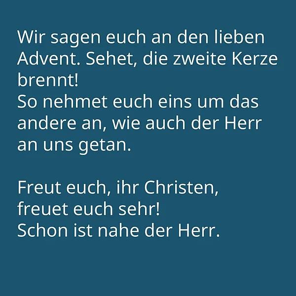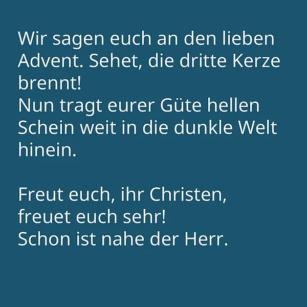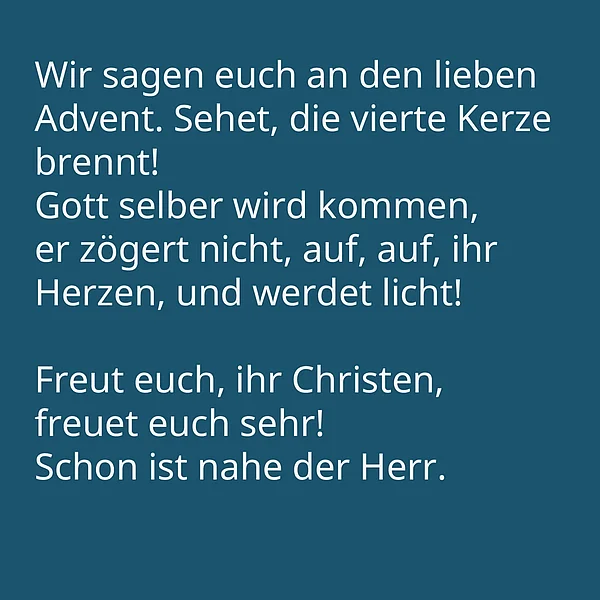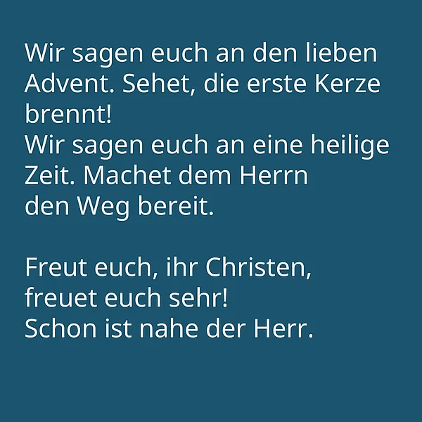 Wie ein Adventskalender öffnet dieses Lied an jedem Adventssonntag eine neue „Tür“. Es nimmt Große und Kleine fröhlich singend mit hinein in die Botschaft: „Freut euch, ihr Christen, freuet euch sehr! Schon ist nahe der Herr!“