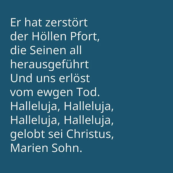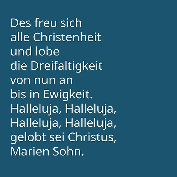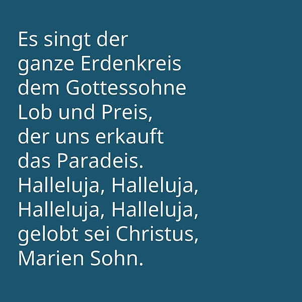 Dieses Lied ist ein kraftvoller und freudiger österlicher Jubelruf! Es darf für viele große und kleine Singende in keinem Ostergottesdienst fehlen. Gerade durch seine Einfachheit und inhaltliche Tiefe verbindet es Menschen über Jahrhunderte hinweg und bringt die Kernbotschaft des Osterwunders zum Klingen: Halleluja! Es freue sich die ganze Christenheit – und wir stimmen jubelnd ein.