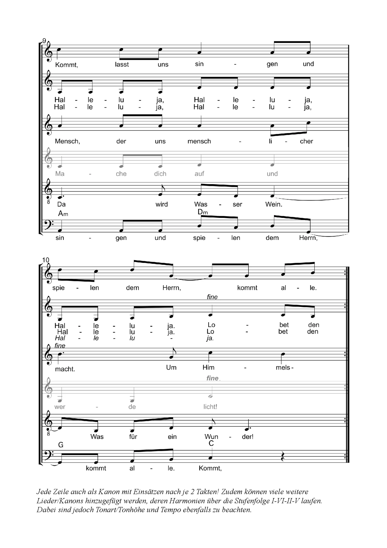 Ob in Kindergruppen, Chören oder Gemeinden: Die vier Ostinato-Stimmen (oder nach Auswahl auch nur eine Stimme als Oberstimme) laden zum Mitmachen ein und lassen ein vielschichtiges Klanggewebe entstehen. Bewegungen und Instrumente können das gemeinsame Singen bereichern – so wird aus einem einfachen Kanon ein klangschönes Gemeinschaftserlebnis.