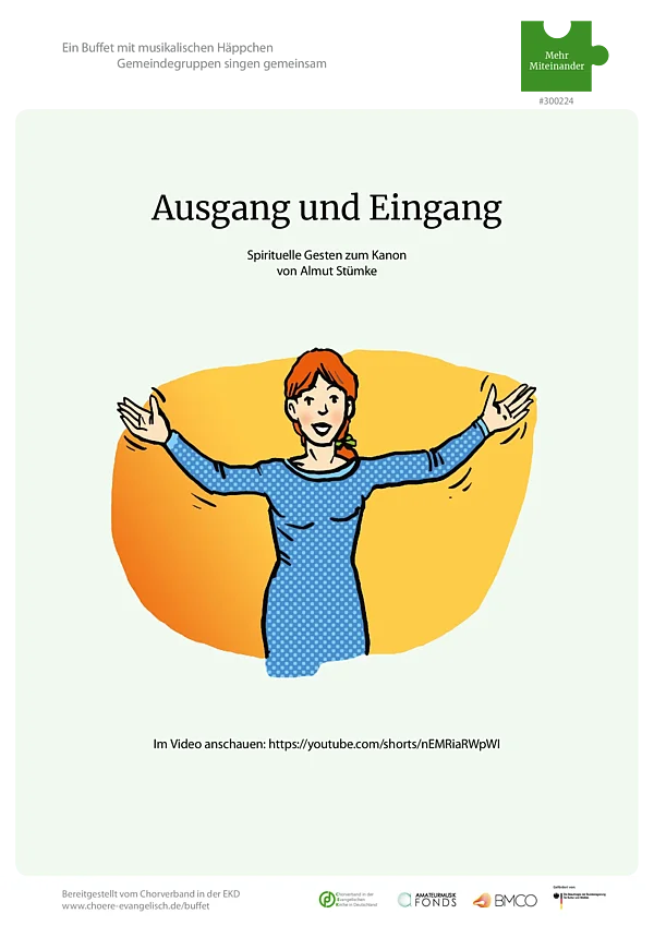 Der Kanon „Ausgang und Eingang“ lädt nicht nur Große und Kleine gleichermaßen zum Singen ein – er kann mit einfachen Gesten auch leiblich erfahrbar werden. Almut Stümke entwickelt dazu eine Reihe von Bewegungen, die den Text meditativ begleiten: Hände, die sich nach vorne öffnen und zurückführen, Gesten des Empfangens, des Aufblicks und des Ausstreckens. So wird die Melodie sichtbar und das Gebet körperlich spürbar. Die Verbindung von Stimme, Bewegung und Spiritualität schafft eine ganzheitliche Erfahrung.