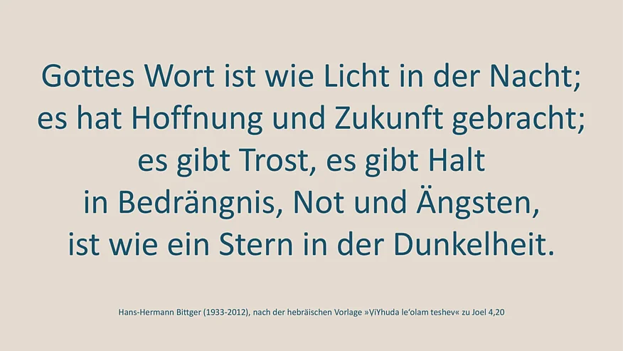 "Gottes Wort ist wie Licht in der Nacht, es hat Hoffnung und Zukunft gebracht."