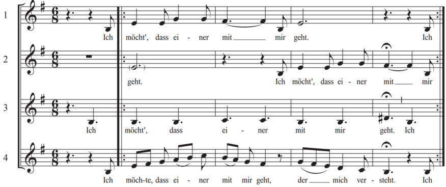 Stimmen 1 + 2 —> Stimme 4 —> Stimme 3