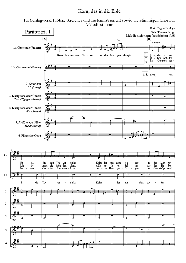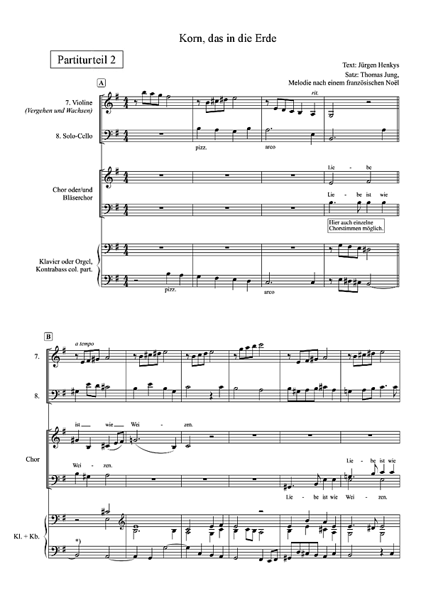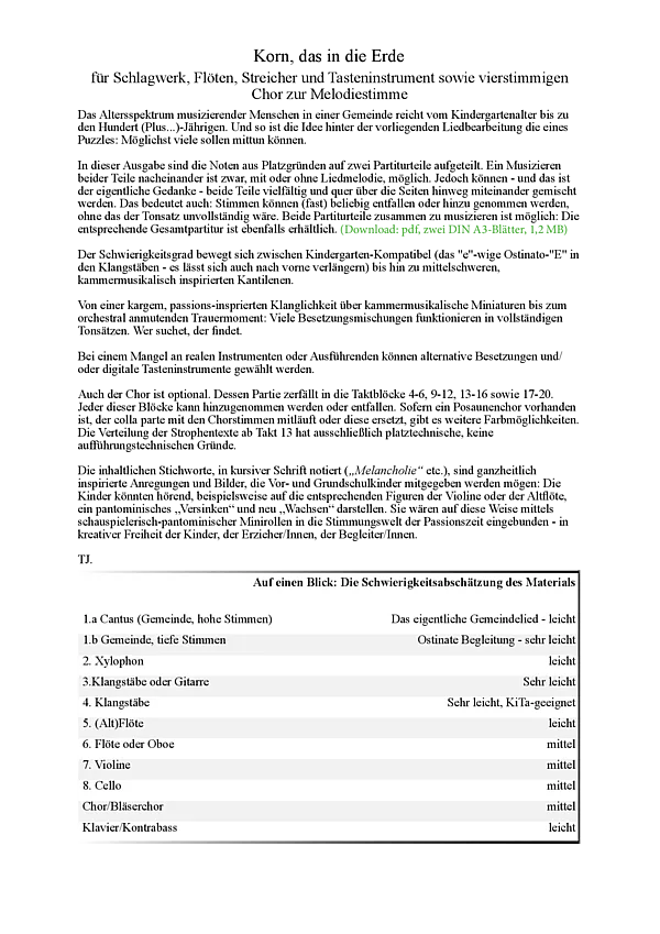 Thomas Jung eröffnet mit seiner Idee die Möglichkeit, viele instrumentale oder vokale Stimmen einzubeziehen. Nichts muss, alles kann – variabel und flexibel an die jeweiligen Gegebenheiten angepasst. Auch bei einem Mangel an realen Instrumenten oder Ausführenden lassen sich alternative Besetzungen oder digitale Tasteninstrumente einsetzen, sodass das gemeinsame Musizieren stets gelingt.