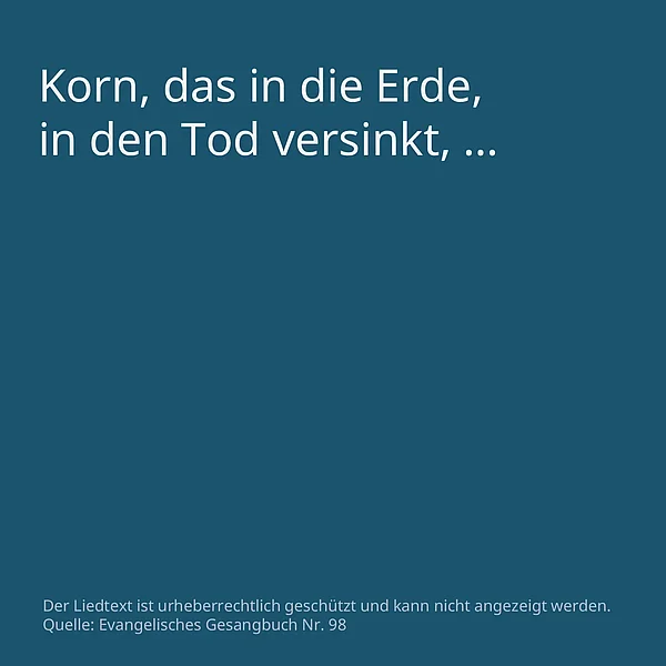 "Korn, das in die Erde" ist eins von Kathrins und Martinas Lieblingsliedern. In diesem Lied kommt das Kirchenjahr zusammen: Die Melodie stammt aus einem französischen Weihnachtslied, der Text kreist um die Passion Jesu und doch klingt Ostern schon überall durch.